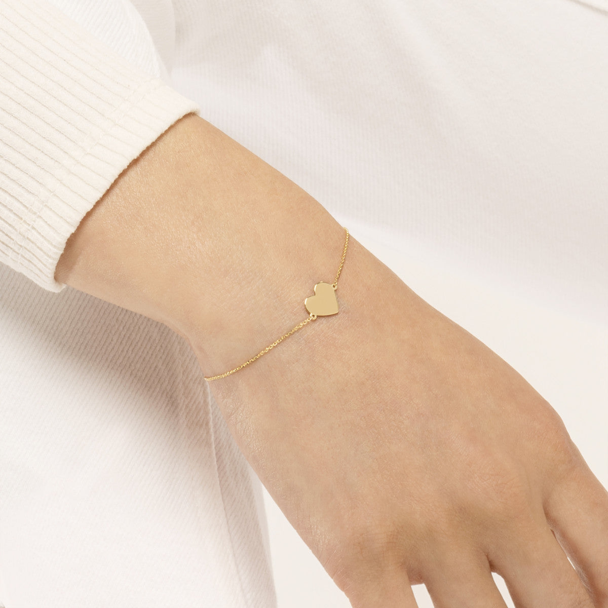 This cute Mini Heart Bracelet comes in 14k solid gold. The heart can be engraved with the initials you want or something fun like A+S. It makes the perfect gift.